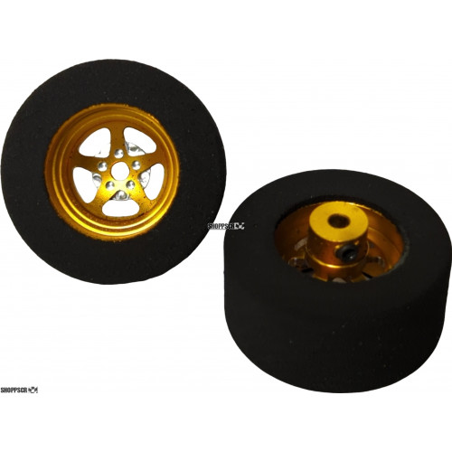 1-1/16"D 0.500"W 0.620"TW 3/32"A 5-Spoke 3D Rear Drag Wheel, Gold (pr)